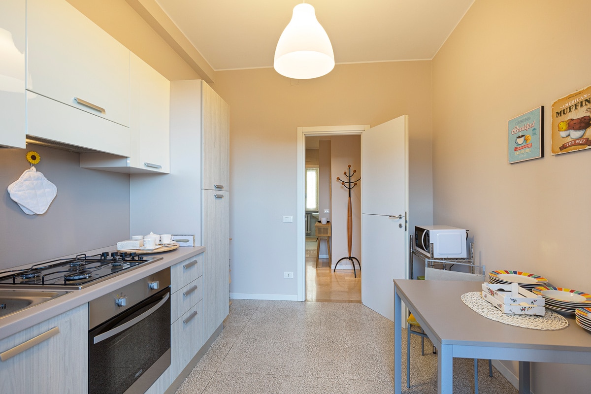 El apartamento de San Gallo, ubicado en el corazón de Cremona, es grande (aprox. 85 m2) , incluye una sala de estar con cocina abierta, 2 dormitorios y 2 baños, y puede alojar hasta 5 personas. El apartamento está finamente amueblado y equipado con todas las comodidades: aire acondicionado, calefacción independiente, wifi gratuito, TV, cocina y baños totalmente equipados, etc. Estas características hacen que el apartamento de San Gallo también sea adecuado para familias y para estancias medianas.