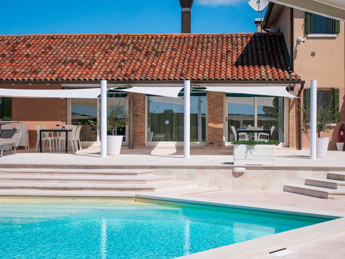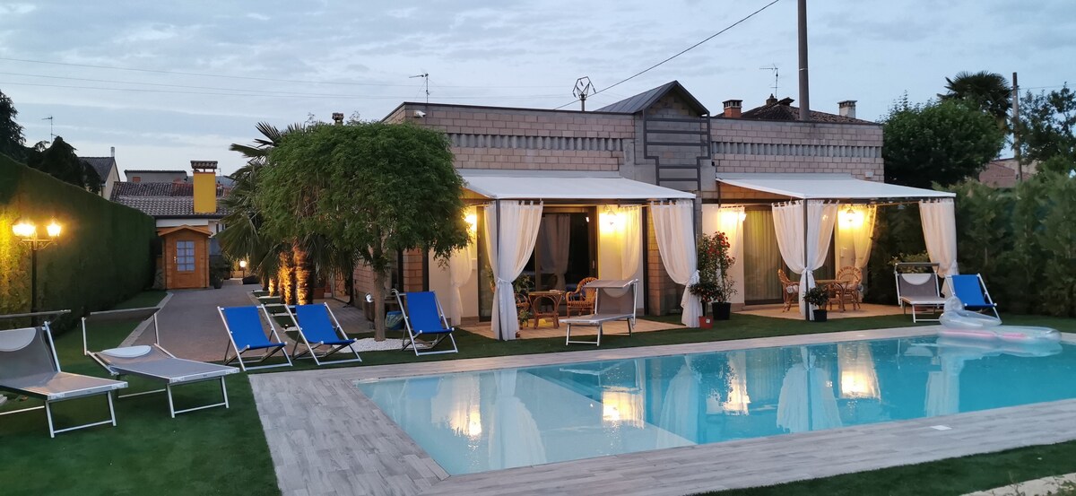 Unser neu erstelltes, voll klimatisiertes und komplett eingerichtetes Ferienhaus mit 2 Schlafzimmer in Rosolina, ca. 8 km vom Meer entfernt, bietet Platz für 4 Erwachsene oder 2 Erwachsene und 3 Kinder. Aussen gibt es eine grosse Terrasse mit Sonnensegel, Lounge, Gasgrill, Liegemöglichkeiten, Pool mit 3.60 Durchmesser und Hollywoodschaukel. Mitbenutzung des kleinen Fitnessraum. Ein gedeckter, schattiger Carport befindet sich gleich neben dem Haus.
