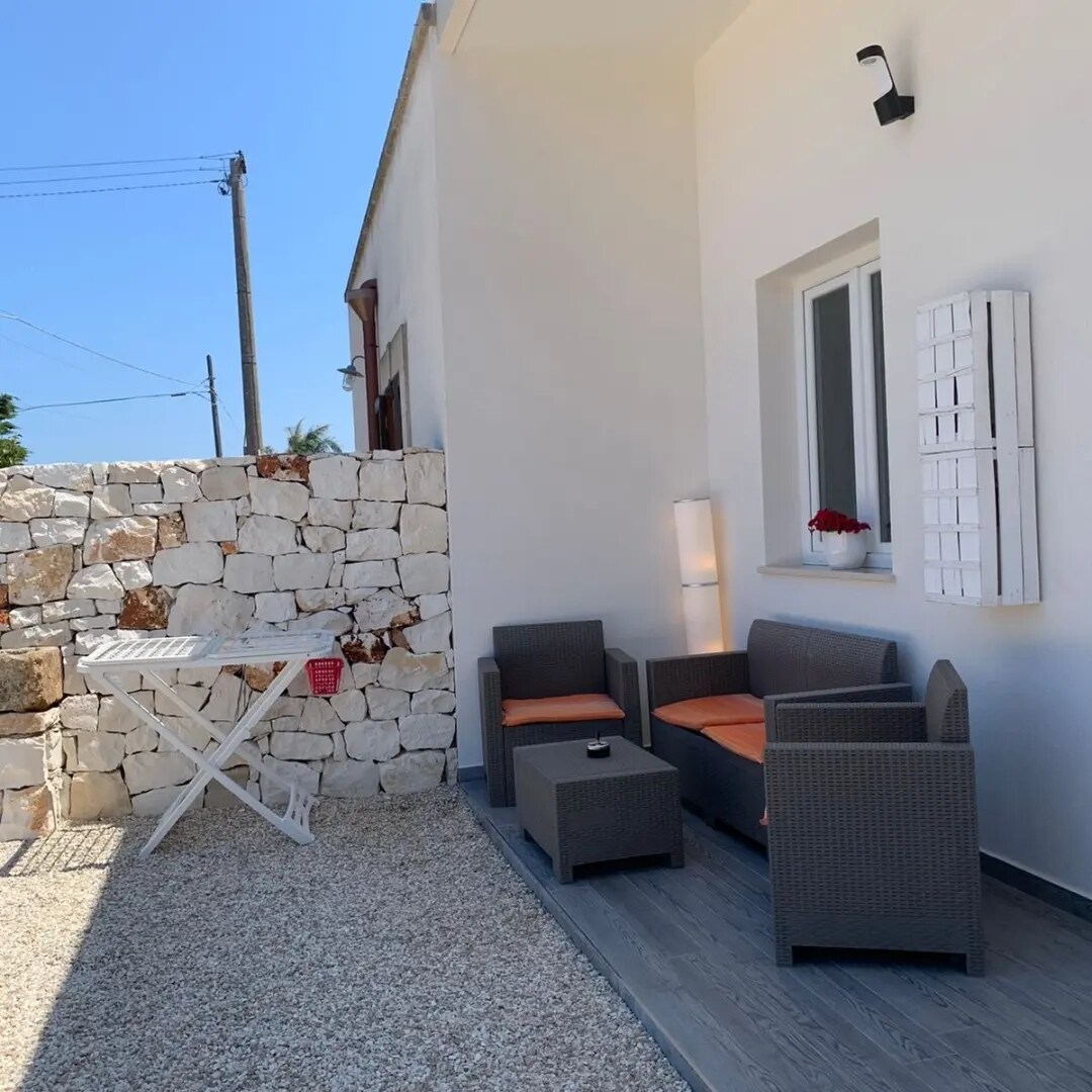 Situada en el interior de una villa, la Dépendance, totalmente independiente, consta de una habitación doble con baño y ducha, una amplia zona exterior de uso exclusivo, con cocina americana equipada y ducha exterior. Su ubicación es ideal para llegar, a pie o en bicicleta, a las hermosas bahías de la marina de Leporano: Porto Pirrone, Saturo y Gandoli. A solo 300 metros se encuentra la parada de autobús con salidas hacia Tarento y otros destinos turísticos.