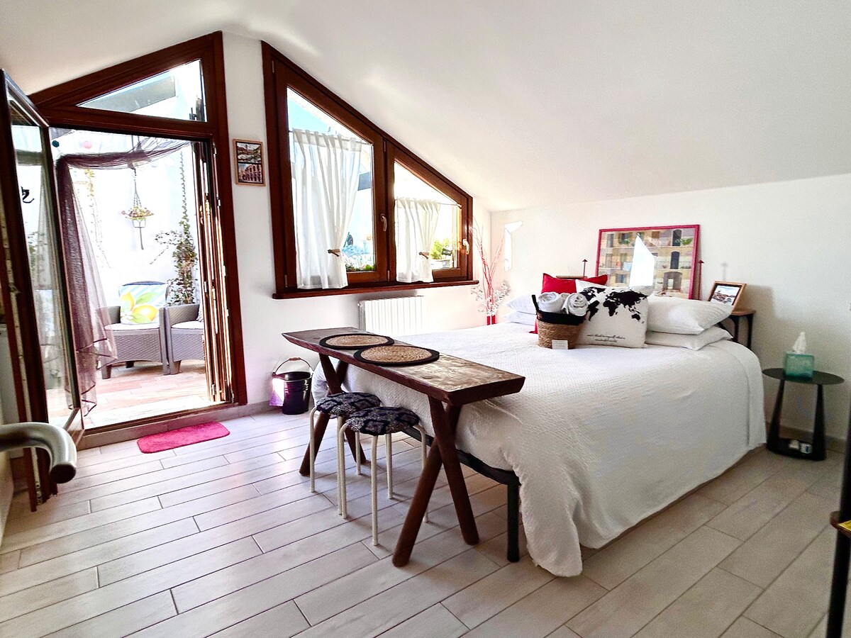 Acogedora habitación tipo loft con baño privado y terraza privada.