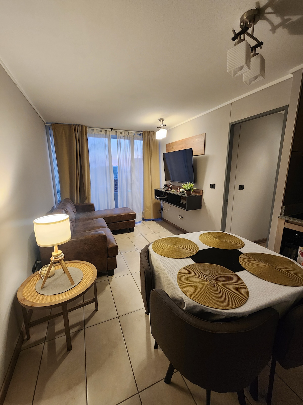Este moderno y acogedor departamento de un dormitorio es perfecto para dos personas. Totalmente independiente y equipado con todas las comodidades necesarias para hacer de tu estadía una experiencia cómoda y relajante. Su diseño moderno y elegante te brindará la tranquilidad que buscas, mientras que su ubicación, cerca de áreas verdes, supermercado y mall, ofrece un entorno residencial y apacible. Ideal para quienes buscan comodidad, privacidad y conveniencia.