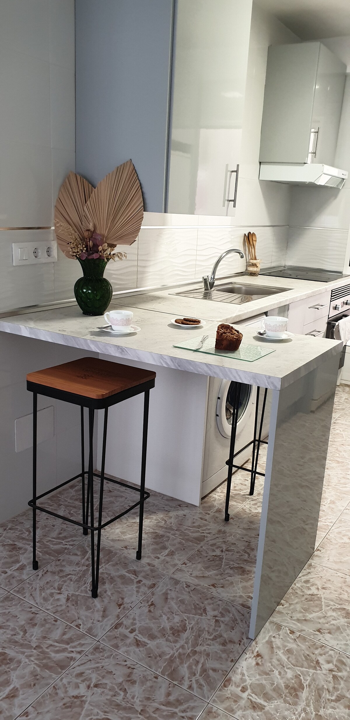 Elegante apartamento de 1 dormitorio doble con balcón que admite mascotas. Espacio luminoso y espacioso con wifi, TV inteligente y cocina totalmente funcional. Gran solárium privado con vistas al mar y a las montañas, tumbonas. Uso de la piscina comunitaria. Bares locales, playas y playa que admite perros a unos 600 metros. Ubicado en un típico pueblo costero español. A poca distancia a pie del paseo marítimo de Puerto de Mazarrón. Temporada de verano: deportes acuáticos disponibles, bar de playa. La histórica ciudad de Cartagena está a 50 minutos en coche.