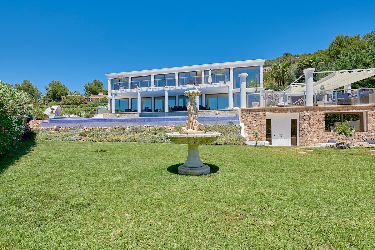 This stylish villa near Ibiza Town offers privacy, comfort, and panoramic views of Ibiza and Formentera. Set within landscaped gardens, it features a large pool, multiple terraces, and an outdoor dining area with BBQ. Inside, the open-plan layout includes floor-to-ceiling windows, elegant living spaces, a modern kitchen, gym, and piano. Well located for beaches and top restaurants, it’s a high-end base with excellent access to the island’s highlights.