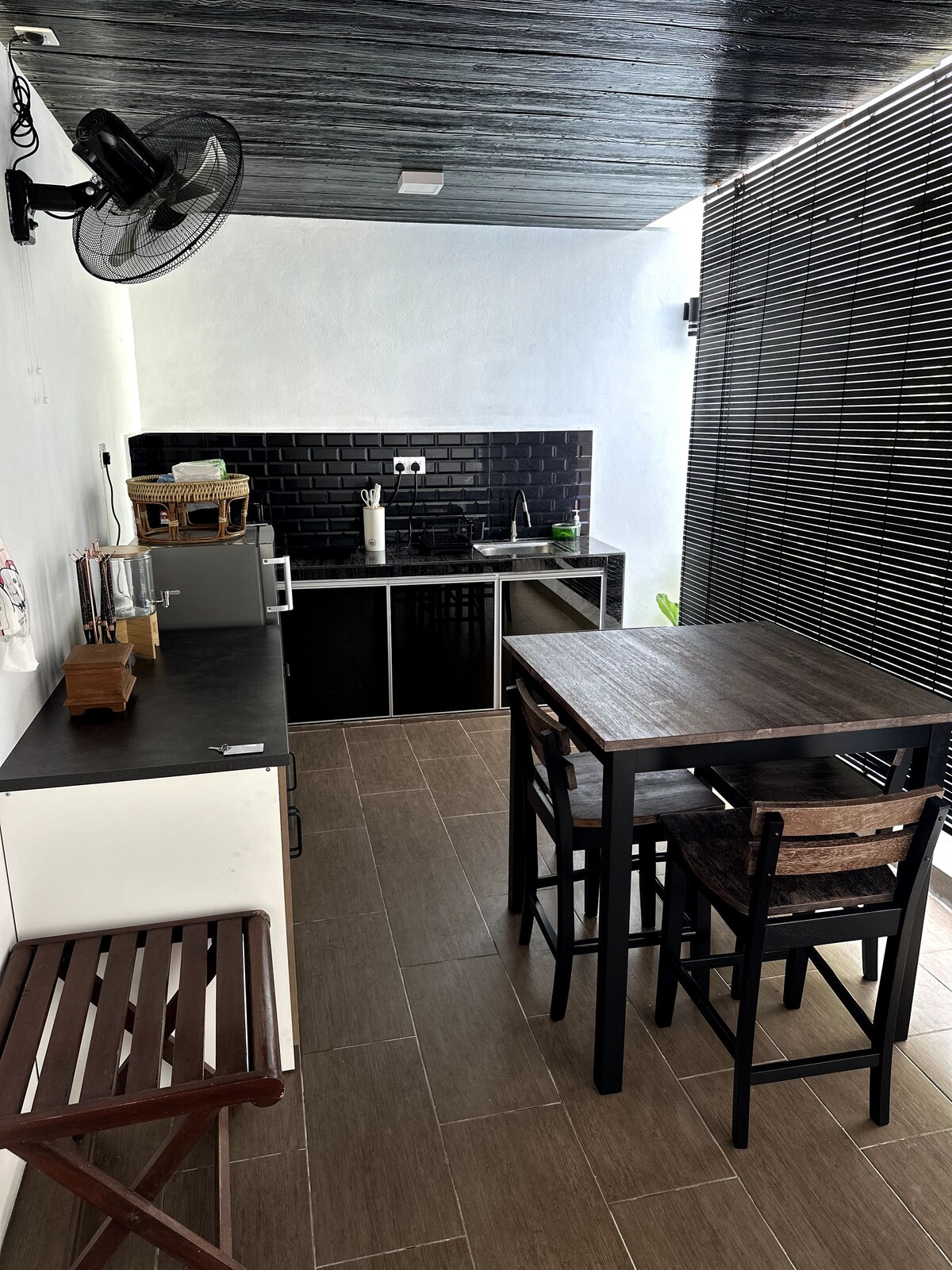 casa privada de un dormitorio frente al mar. Habitación adicional disponible si es necesario con reservación separada. Cada reservación no se compartirá con otros huéspedes. Terraza frente al mar y frente al manglar en dirección opuesta. 1 inodoro con calentador de ducha. Cocina con artículo básico mininevera/hervidor de agua/platos y cubiertos y mini estufa para cocinar ligeramente. embarcadero privado se puede relajar y usar el embarcadero para el uso privado del barco.