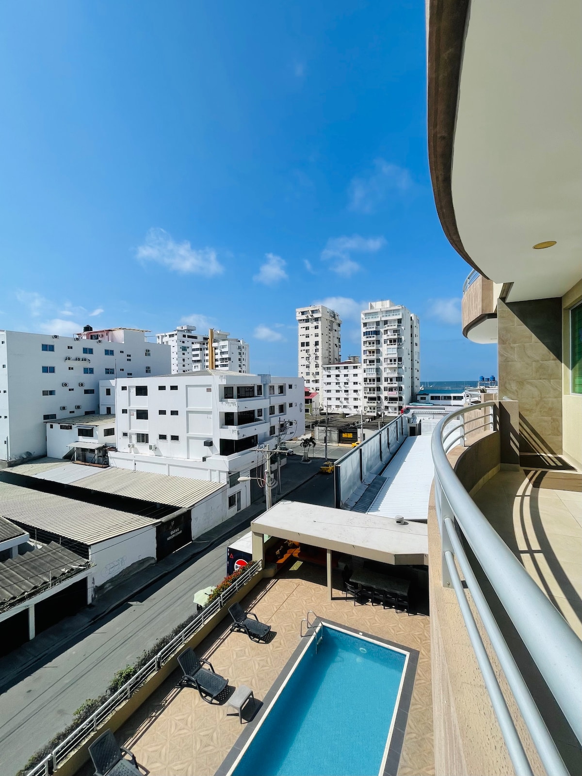 Frente al mar con seguridad 24h en la urbanización, playa y parqueo. Acorde con el sonido del mar, tome café con la brisa entrando por la ventana y sienta que el tiempo paró ♥ ⭐Incluye: • 3m caminando a playa • Parqueo y vistas 360° • WiFi 600Mb • Piscinas, jacuzzi y zona BBQ • Cuartos con A/C, agua caliente y cortinas • TV: Netflix, Spotify & Alexa • Airfryer, cafetera, micro, refri y cocina • 3 baños, cuna, Petfriendly, ascensor • Toallas, ropa de cama y papel • Guardias, y cámaras 24h