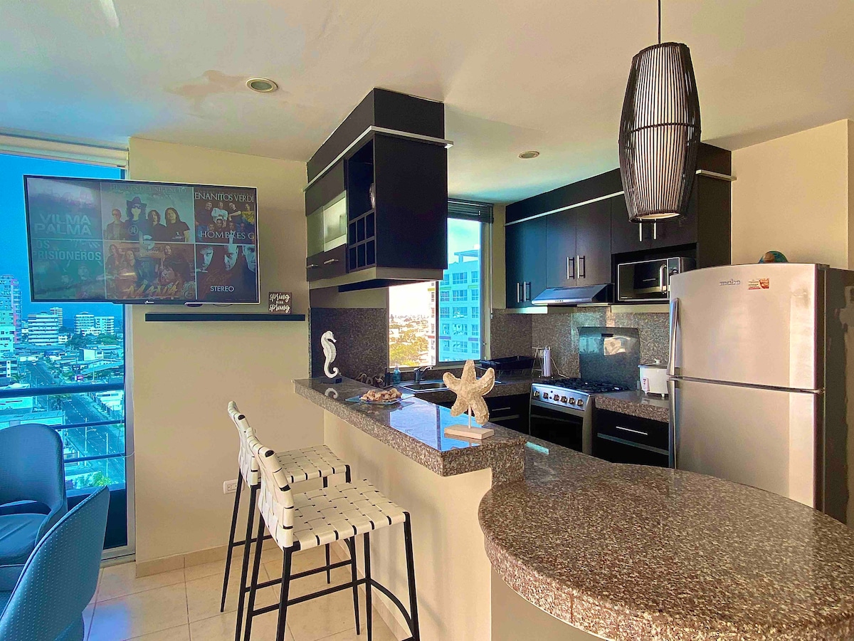 Acogedor apartamento al pie del mar en el piso 13 del Hotel Colón Miramar, lo que le da una espectacular vista de la playa. Cuenta con las comodidades necesarias para disfrutar tus vacaciones: -Habitación máster: cama King y baño completo -Comedor -Cocina completa -SmartTV con servicio de streaming en habitación y sala -Lavadora y secadora -Wifi -Parqueo privado -Seguridad 24/7 -Servicios del hotel: piscina, gym, spa, sauna