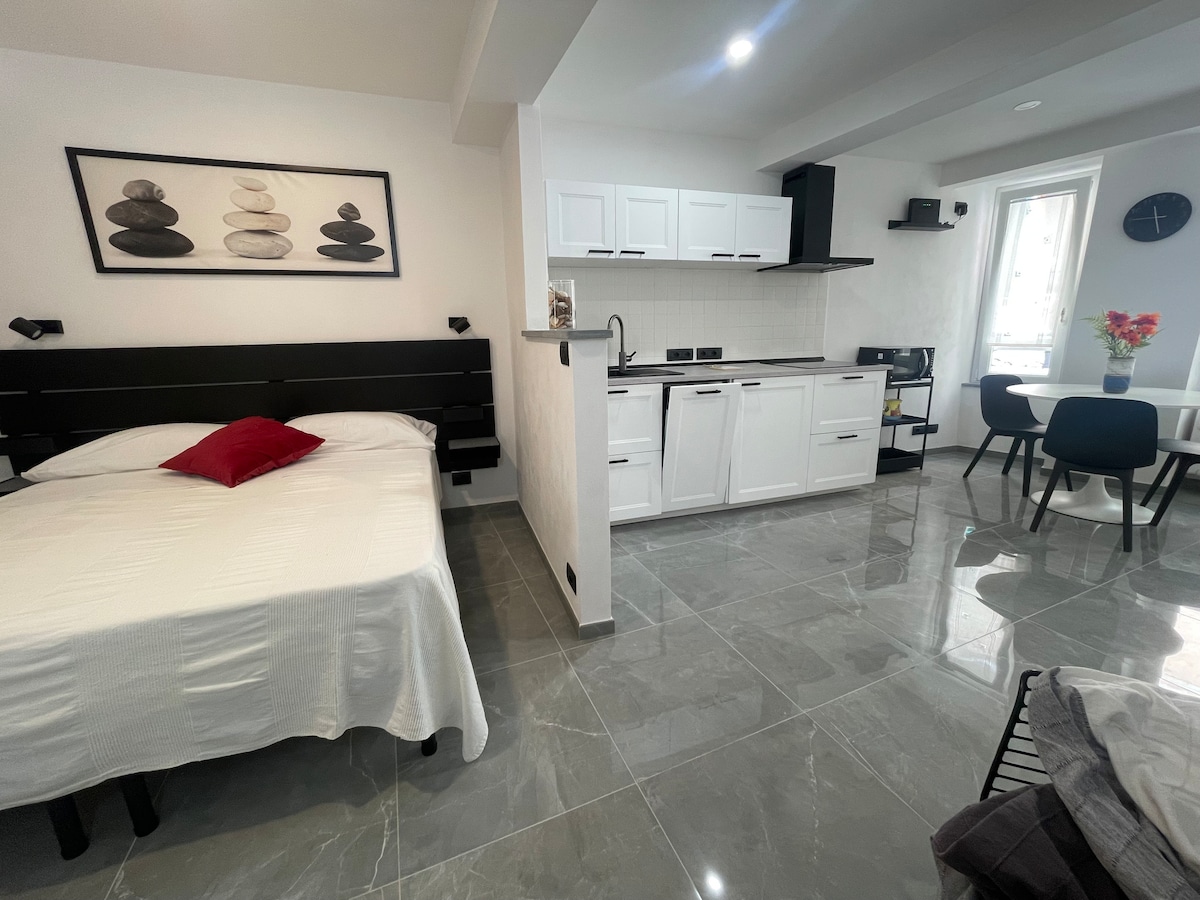 Bonito apartamento en una casa solariega, con vistas a un hermoso jardín. Compuesto por cocina, baño con ducha y dormitorio, está equipado con wifi, aire acondicionado, calefacción independiente, TV vía satélite, cocina de inducción, lavadora y lavavajillas. Conveniente para llegar a la estación de tren (4min) y a la hermosa playa de Fegina (1min). El IMPUESTO MUNICIPAL es de 3 €/persona/día (solo para los 3 primeros días) y debe pagarse en efectivo en el momento del REGISTRO DE ENTRADA.