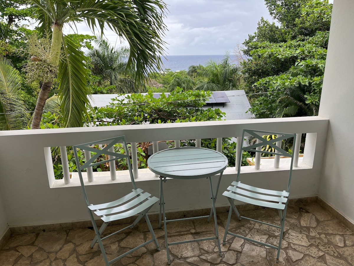 Escápate a un paraíso tropical en nuestra hermosa suite de 2 camas tamaño queen. Perfecta para familias o grupos de amigos con una capacidad máxima de 4 personas. La suite incluye un balcón privado con una vista serena de exuberantes árboles y vegetación. La habitación incluye una nevera pequeña, cafetera, TV, wifi, aire acondicionado y ducha de agua caliente. La habitación se encuentra dentro de una casa de huéspedes con cocina americana y solo se puede acceder por escaleras. Se admiten mascotas, no se puede fumar. Información adicional en el sitio.