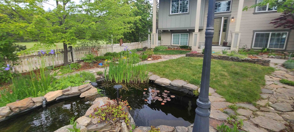 Gran suite privada cerca del centro de Coeur d'Alene. Luminosa, espaciosa, tranquila y muy privada, y a solo un corto trayecto panorámico en coche del centro de la ciudad. Nuestro pequeño rancho moderno se encuentra en 8 acres cercanos en una carretera pintoresca bien mantenida donde es común ver alces, ciervos, pavos e incluso alces. Es un lugar ideal para una escapada serena o un viaje de negocios, pero no apto para fiestas. Muy fácil acceso al lago Coeur d'Alene y al centro de la ciudad.