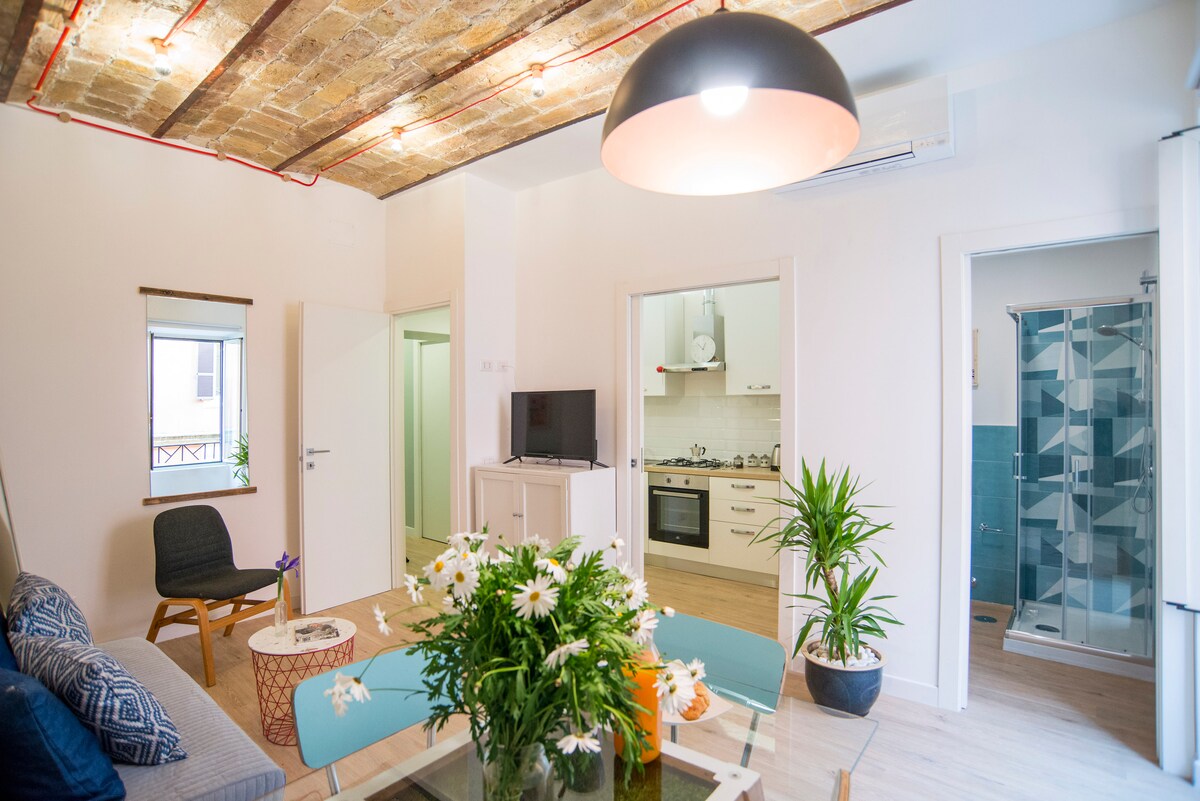 Nuevo apartamento independiente con capacidad para cuatro personas en el auténtico y vibrante barrio de San Lorenzo, situado en la planta baja de un edificio histórico. Está totalmente equipado para pasar una estancia lo más cómoda posible en Roma, ¡como en casa! Cuenta con un dormitorio con cama de matrimonio y TV inteligente, un baño con lavadora, secadora y todos los elementos esenciales de belleza, una cocina moderna «Miele» y una sala de estar con sofá cama y TV inteligente. Restaurante, tiendas y transporte público a poca distancia a pie. ¡Aplicaciones de streaming gratuitas!