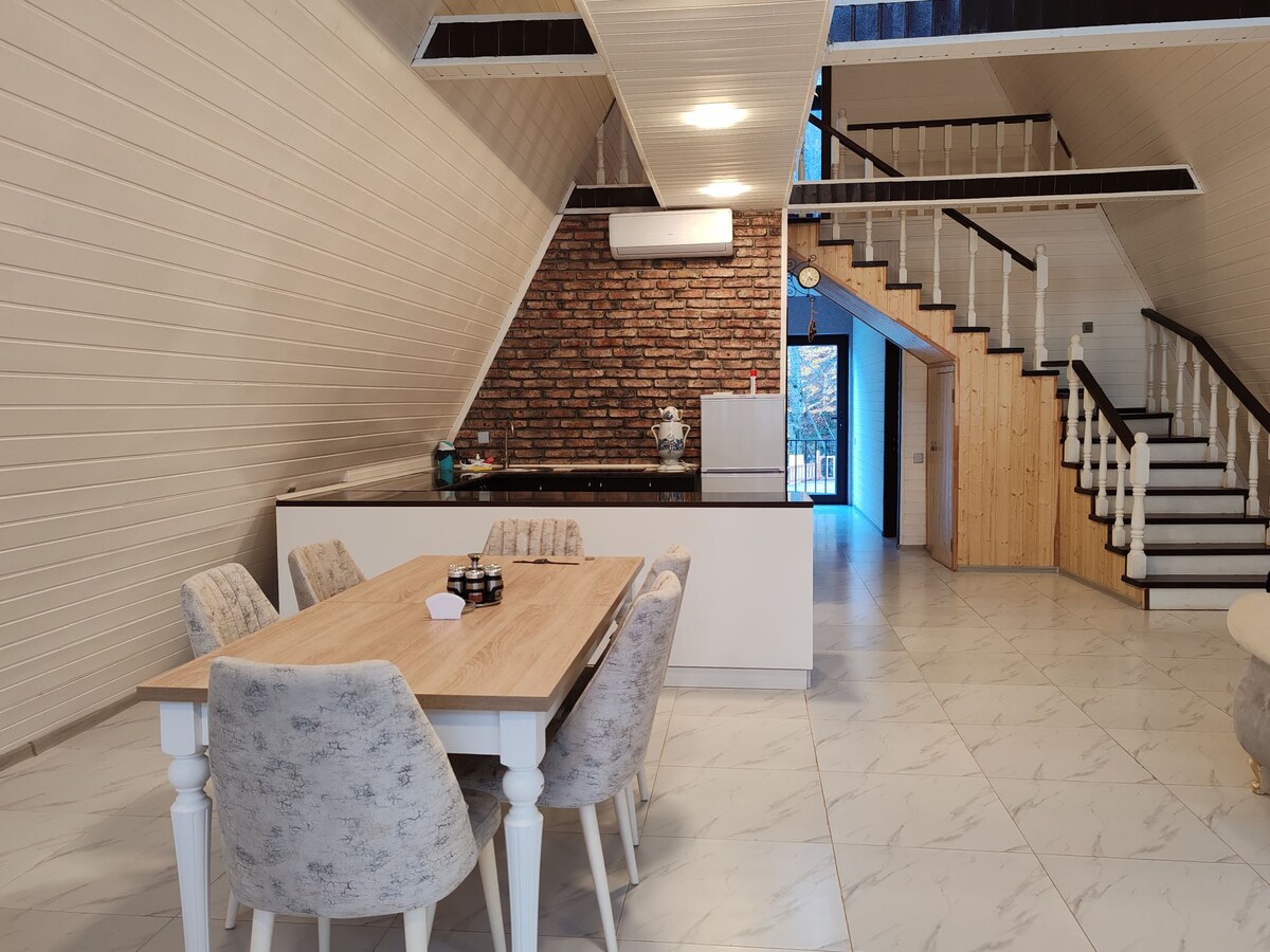 Una exclusiva casa escandinava en el pueblo de Chaigovoshan (Ismailly) es un lugar único en Azerbaiyán para aquellos que quieren escapar del ajetreo de la ciudad. Ventanas panorámicas con vistas a las montañas y al río, el silencio absoluto y el aire fresco crean un ambiente de privacidad y relajación. En la casa: cocina, sala de estar, 2 dormitorios con camas dobles, pisos climatizados, renovación fresca. En el territorio: terraza, cenadores, parrilla, columpio, lugar para un fuego. Una opción ideal para los amantes de la naturaleza y la comodidad.
