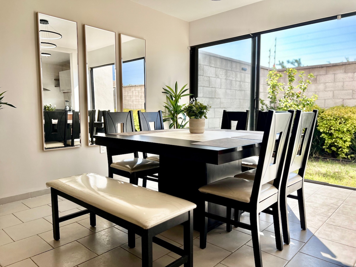 Disfruta de la sencillez de este alojamiento tranquilo y céntrico. A tan sólo 10 minutos en auto del centro histórico. Cercano a Plaza Bulevares y Plaza del parque. En la zona hay tiendas de autoservicio y restaurantes a los que se puede llegar caminando. Cuenta con 2 habitaciones, 1 baño completo y 1/2 baño en planta baja. La cocina cuenta con los utensilios básicos para que te sientas como en casa, y la casa dispone de un patio privado donde se encuentra el área de lavado.