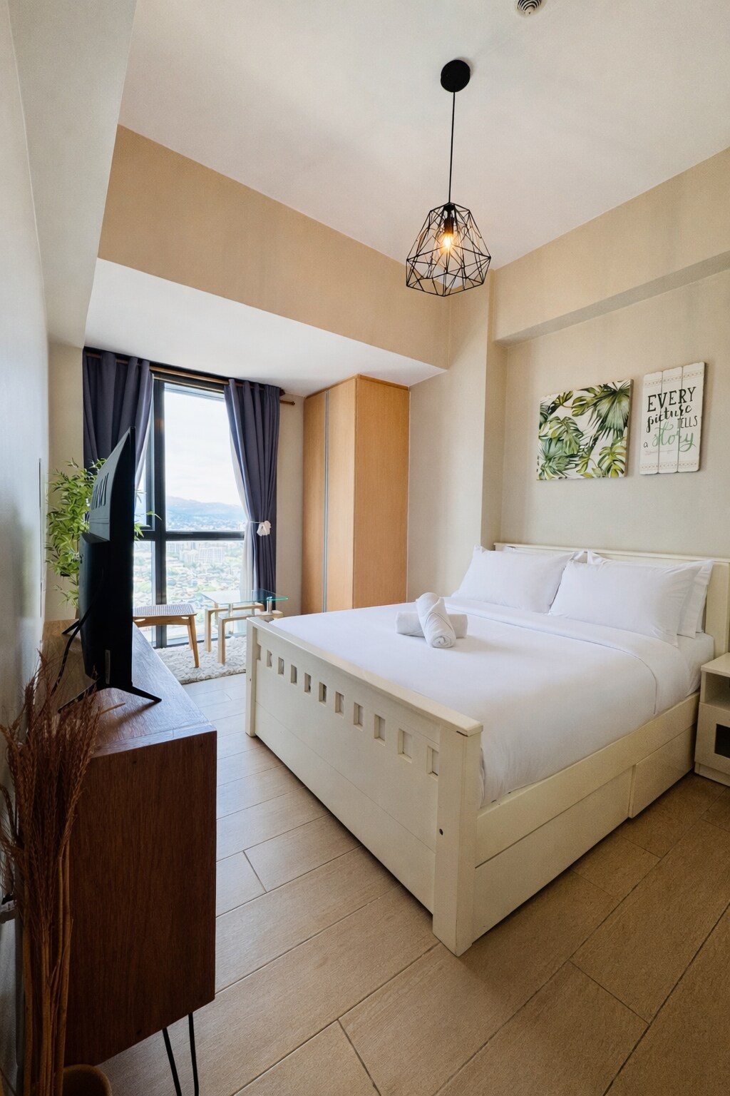 Relájate y desconecta en este tranquilo y elegante estudio inspirado en la Bauhaus con vistas a la ciudad y a la montaña que captura las mañanas de ensueño y las vibraciones del clima de la cama. ¡Nos enorgullecemos de tener un apartamento tipo estudio limpio a un precio asequible! Descuentos para estancias largas. 🅿️TARIFAS DE APARCAMIENTO: (infórmalo con antelación) 🚘 Coche: de 250 a 300 ₱ 🛵 Moto: de 150 a 200 ₱ 💦DETALLES DE LA PISCINA: Se requiere traje de baño adecuado. 🩱 Horario de natación: de 8:00 a 22:00 h 150,00 ₱/persona días normales 300 ₱/persona en días festivos