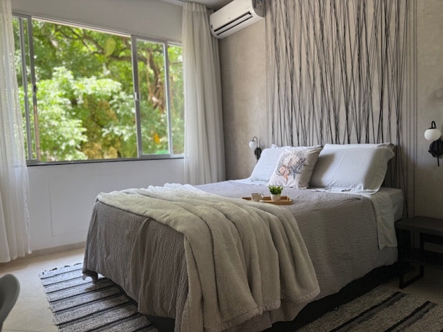 Loft único con estilo propio, superbién equipado, moderno, 1 cama queen, 1 sofá cama, espacio para trabajar y wifi. Cocina con vitrocerámica, microondas y cafetera Nespresso. Área de servicio completa. Aire acondicionado split. Ventana antirruido, muy bien ubicado, frente, cerca de bares, restaurantes, mercados, tiendas, metro y centro comercial. Fácil acceso a la playa, está cerca de opciones de alquiler de bicicletas. Plaza de aparcamiento dentro del condominio, y dos ascensores (social y de servicio).