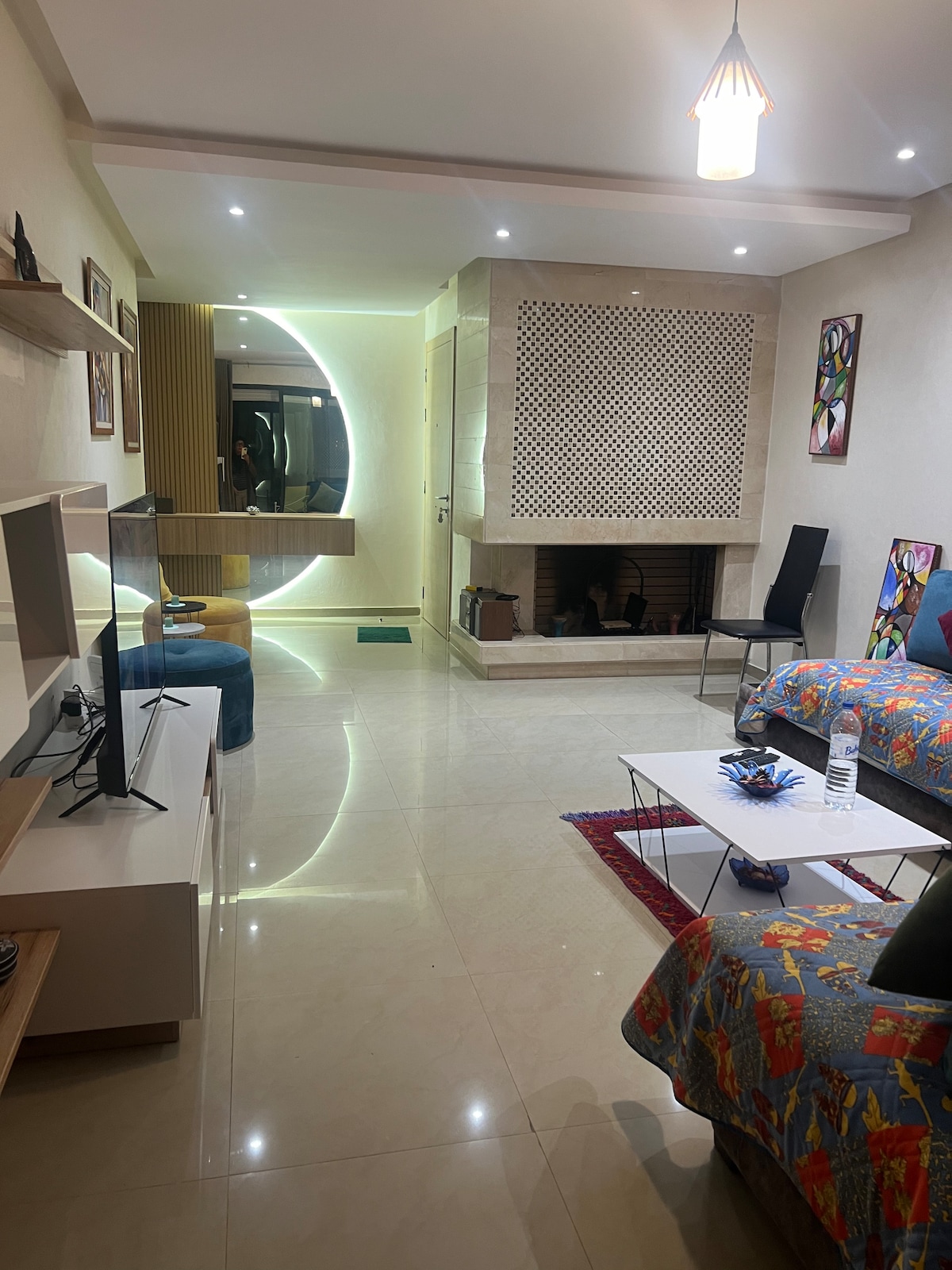 Apartamento nuevo, fabuloso, bien equipado con conexión de fibra óptica de alta velocidad, Netflix, IPTV... tranquilo y seguro. Este apartamento ofrece momentos de relajación para toda la familia con aparcamiento gratuito en el lugar.A 500 metros del gran Carrefour Salé, tiendas de comestibles a pocos pasos para hacer sus compras. Cerca de Burger King,Nigiri House,Adidas,Fitness Park,peluquería y hammam... ¡A 200 metros del mar donde hay cafés con vistas panorámicas al océano!Serán bienvenidos