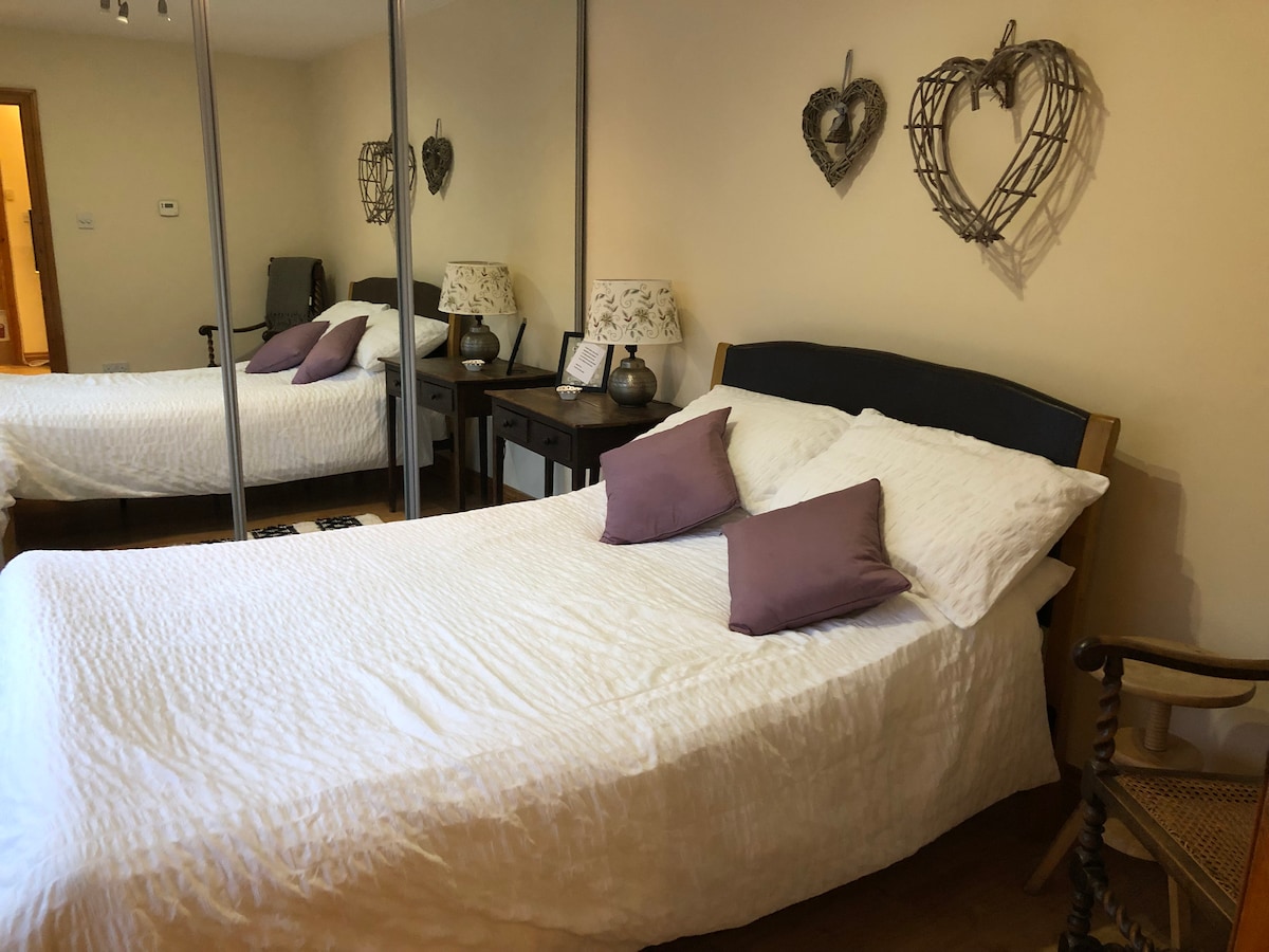 Our eco friendly freshly repainted cottage sits at the front of our family run farm. We have adopted a green approach to living with photovoltaic electric and ground source heat pump underfloor heating. This self contained one bedroom bungalow has its own front door entrance and is a huge comfortable space to relax, rest and recuperate for a short break away or after work. It is available to book for one day or more and we offer a discount for monthly bookings.