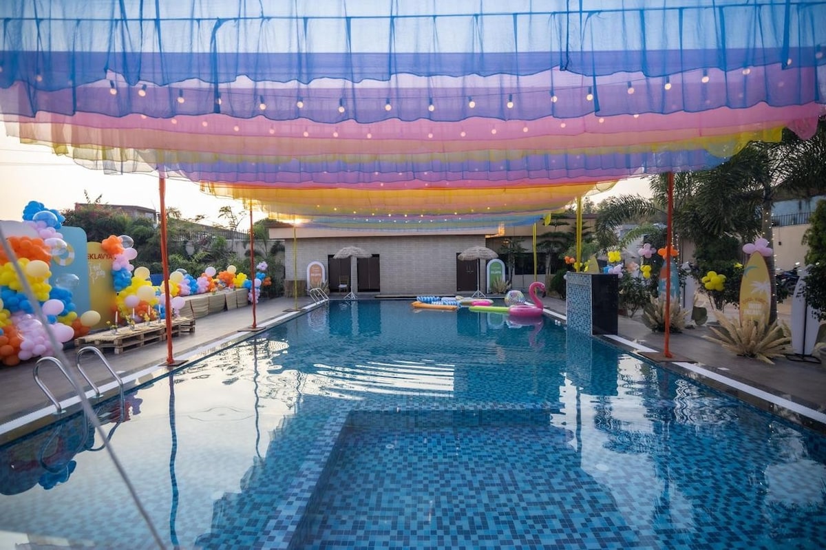 Te damos la bienvenida a Eklavya Banquet and Rooms Disfrutá de una estadía cómoda con acceso a las mejores comodidades, como un jardín de 22000 pies cuadrados, una piscina de 1500 pies cuadrados, una piscina para bebés, un jacuzzi y un minisalón. Ofrecemos 14 habitaciones bien equipadas, incluidas opciones de lujo y de lujo, junto con estacionamiento para 200 vehículos. Aceptamos mascotas y somos ideales tanto para estadías relajantes como para eventos privados. Tu comodidad es nuestra prioridad en Eklavya Banquet and Rooms