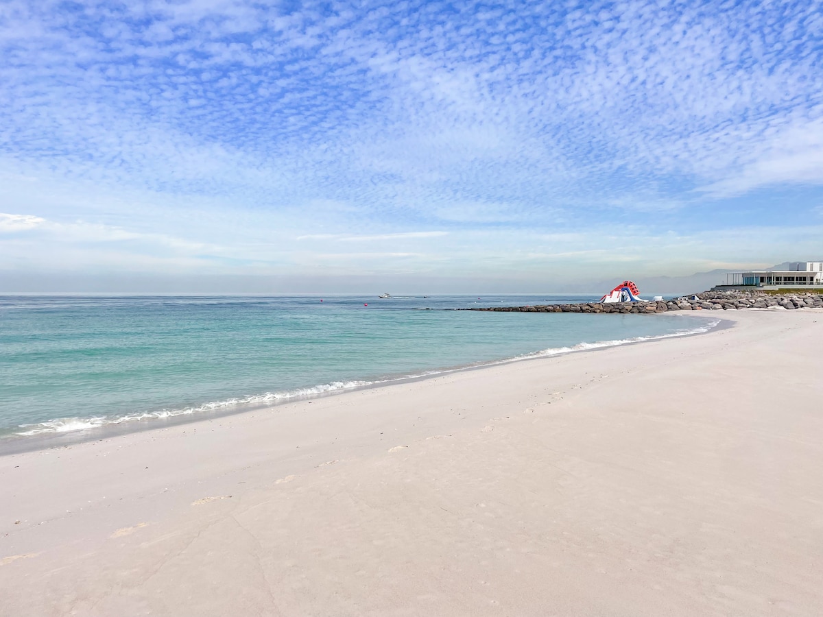 Unwind in this elegantly designed Scandinavian Coastal studio, where soothing blues, a new full-body massage chair, ocean-inspired décor, and natural textures create a serene retreat. Perfectly located on Al Marjan Island near the upcoming Wynn Resort, this modern studio offers smart amenities, a charming partial sea-view balcony to enjoy the ocean breeze, and exclusive private beach access. Swim, sunbathe, or explore nearby cafés and restaurants for a truly memorable stay.