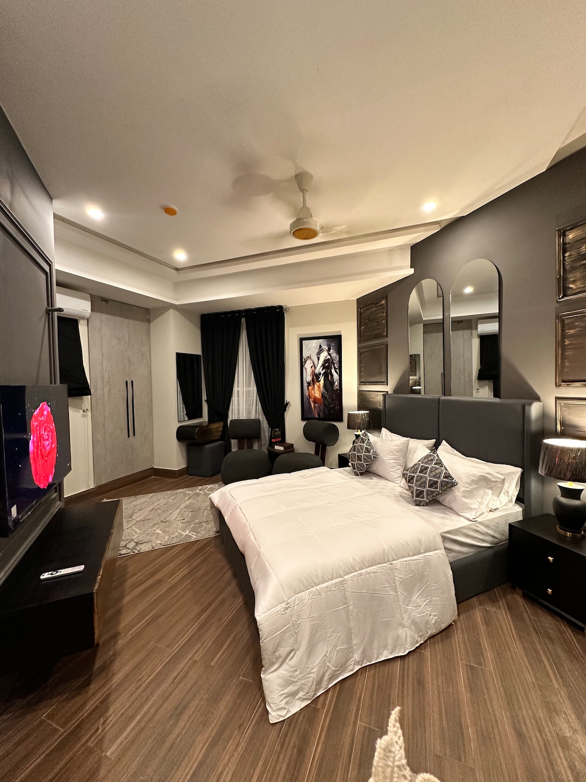 The Grey Loft apartment, located in Bahria Town Phase 1, at discounted prices exclusively for our new guests! ~ Spacious and thoughtfully designed, it is a warm and welcoming space for families, couples, or business travelers. ~ The location is in the heart of Bahria town with Bahria Active right beside it ~ Guests will have easy access to a Pool, Sauna and Gym. (separately paid) ~ You can enjoy both relaxation and fitness during your stay. ~ Cleanliness is our top priority at the Grey Loft.