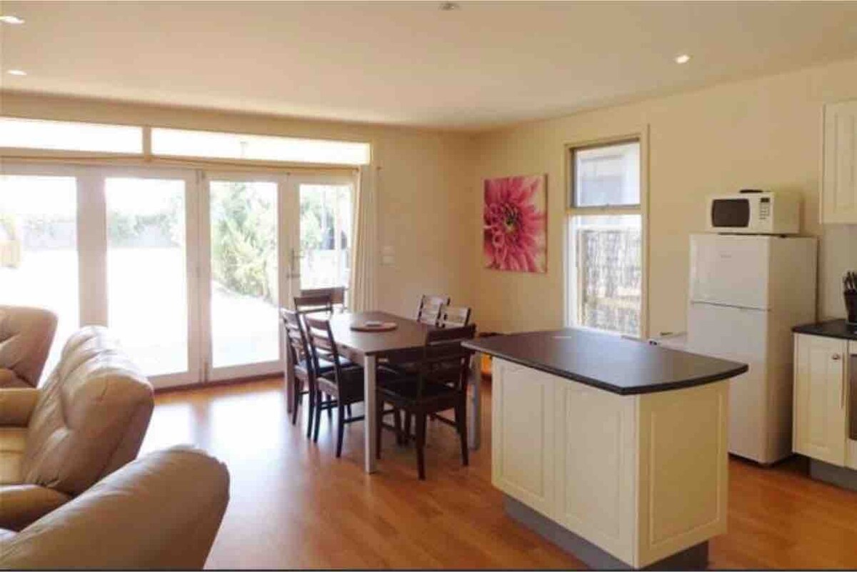 Gillys es una moderna casa de huéspedes independiente de 2 dormitorios situada en una calle tranquila. La casa de huéspedes se encuentra en el lado protegido y privado de la residencia principal y en un sitio de un acre, con vistas a grandes árboles y jardines. Disfruta del aspecto tranquilo, contempla las estrellas por la noche y escucha las olas distantes rompiendo en la playa de noventa millas. El pueblo de Metung está a solo a 8 minutos en coche para tus suministros más cercanos. Hay una pista pública de naturaleza que conduce a una playa junto al lago y un muelle privado.