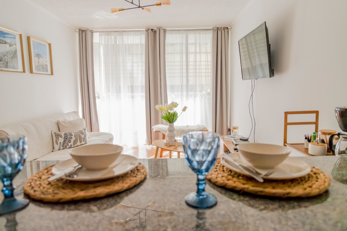 Moderno y acogedor departamento en el corazón de Santiago. A pasos del metro y del Centro Histórico, rodeado de museos, mercados y restaurantes. Cama king, cocina equipada, balcón y wifi rápido, ideal para viajes o estadías largas. Edificio seguro con conserje 24/7. Atención personalizada, check-in flexible y recomendaciones locales para que disfrutes la ciudad como un residente, con comodidad y tranquilidad.