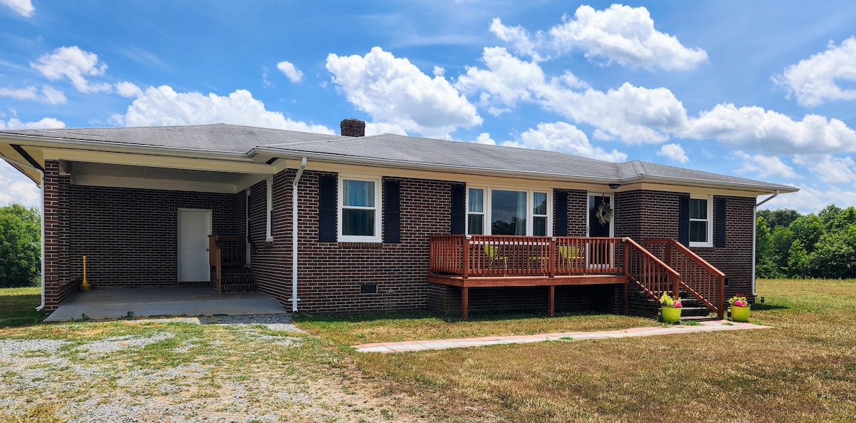 Amplio, limpio y relajante, este alojamiento está a menos de 8 millas de VIR y a 18 millas de Danville, South Boston o Roxboro. El anuncio está en una sola planta para acomodar a las personas con problemas de movilidad. Wifi Starlink de alta velocidad. Las habitaciones ofrecen sábanas, almohadas y mantas. Los baños ofrecen toallas y artículos de tocador. Cocina completa con café. Estacionamiento pavimentado extragrande con fácil acceso. Perfecto para remolques/varios vehículos grandes. Cerca de la autopista, es posible que desee empacar tapones para los oídos. Estricta no fumar ni mascotas, por favor.