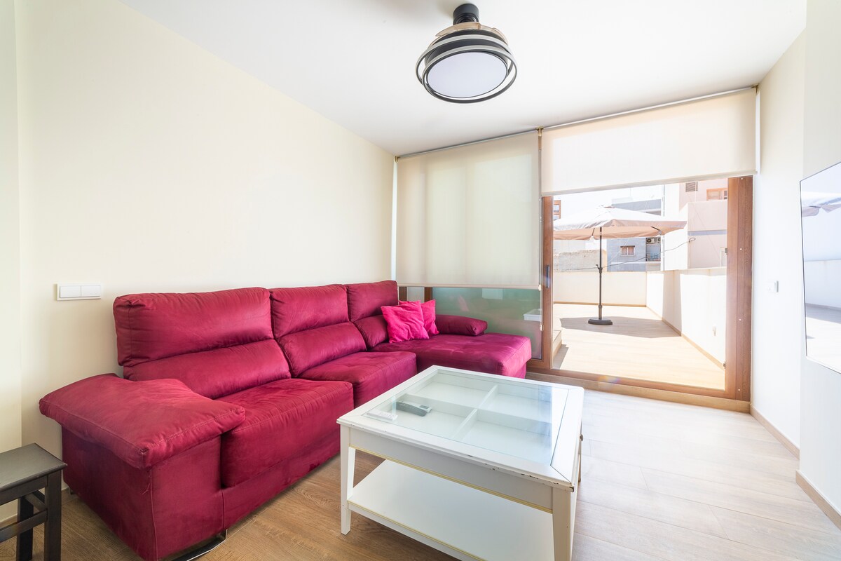Apartamento moderno y céntrico, a cinco minutos de lugares emblemáticos, zona de bares y restaurantes, núcleo comercial... y a 15 minutos de la playa. Totalmente equipado, con aire acondicionado, WIFI, cocina completa, televisión y ventilador en dormitorios y todo lo que puedas necesitar. Ideal si quieres disfrutar de la ciudad a pie o si decides llegar en coche y aparcar por la zona pues hay parkings vigilados por todo el barrio.