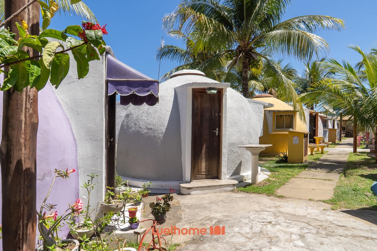 La casa es un alojamiento sencillo, pero con una excelente ubicación. Cerca del mercado, restaurantes, bares. Praia do Forte está a solo 8 minutos a pie, así como la feria hippie y el Parque das Águas. El centro de la ciudad y la estación de autobuses también están muy cerca. Los chalets están dentro de una zona compartida con otros tres chalets y una casa principal. Los chalés son suites con balcón y están amueblados con una cama doble, minibar, ventilador. El baño tiene ducha eléctrica. Estacionamiento interno