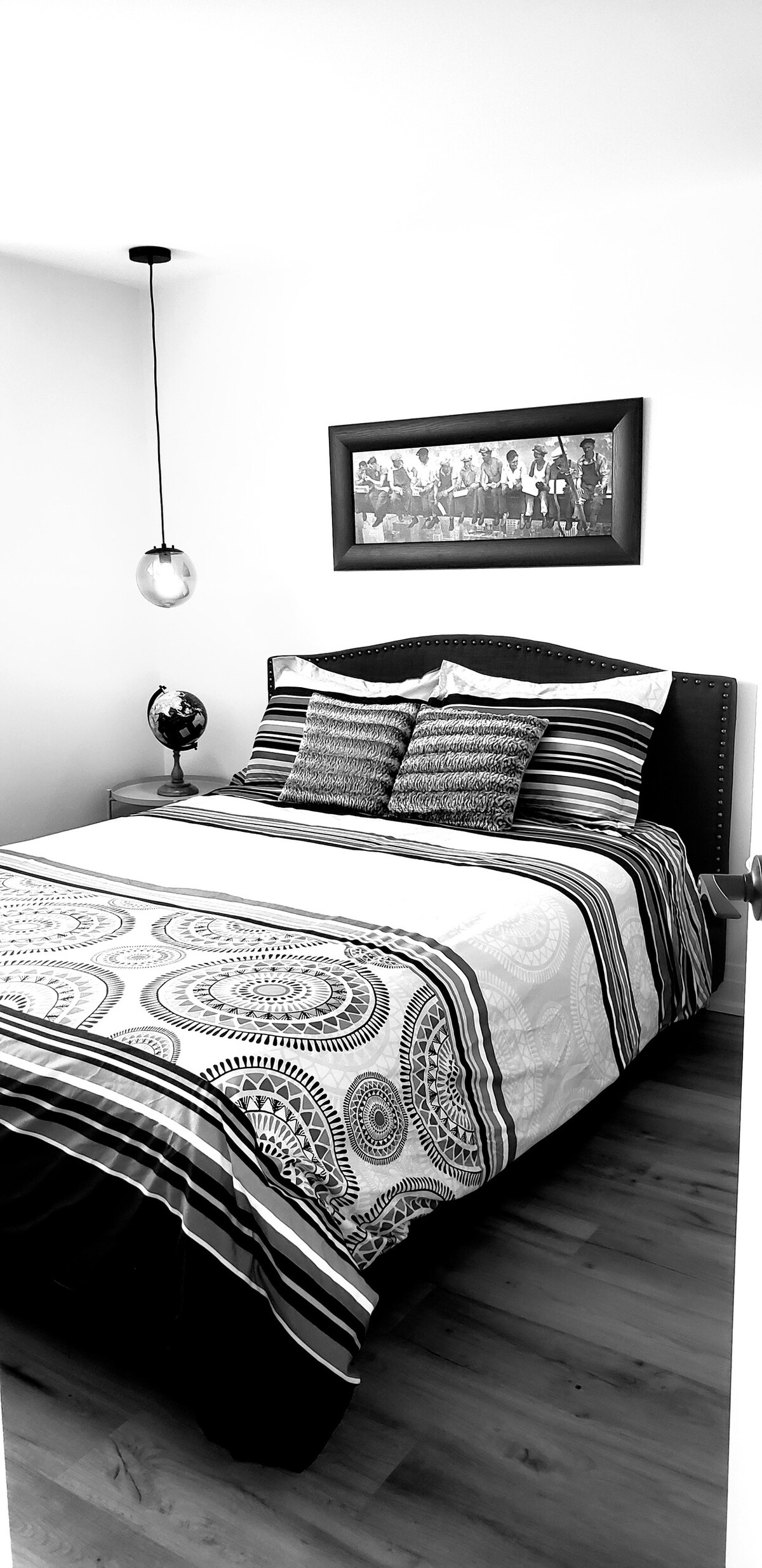 Amplio dormitorio (unos 820 pies cuadrados), unidad limpia para no fumadores con dos televisores de 65 pulgadas, El espacio es privado y solo para los huéspedes que lo reservaron. Hay estacionamiento disponible en el lugar, si es necesario A 5 minutos de la 401, Toronto Premium Outlet y Milton Go. Un parque está justo enfrente. Tienda de comestibles RABA 24*7 y El acceso es a través del garaje con teclado.