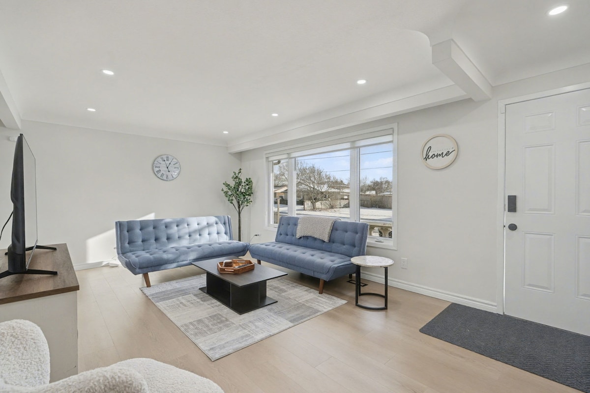 ¡Te damos la bienvenida a mi nueva casa! Mi casa acaba de ser completamente renovada con acabados nuevos y modernos. Se encuentra a 15 minutos en coche de las cataratas del Niágara e incluye 4 hermosos y espaciosos dormitorios y 2 baños completos, con 1 medio baño. Disfrutarás de una vida de concepto abierto, electrodomésticos nuevos, wifi de alta velocidad y café gratuito. ¡Mi alojamiento también tiene estacionamiento gratuito para 2 autos justo en la entrada! ¡Hay 1 cama tamaño king y 3 camas tamaño queen y todas están muy cómodas! ¡También hay una nueva mesa de hockey de aire para que la uses en el sótano!