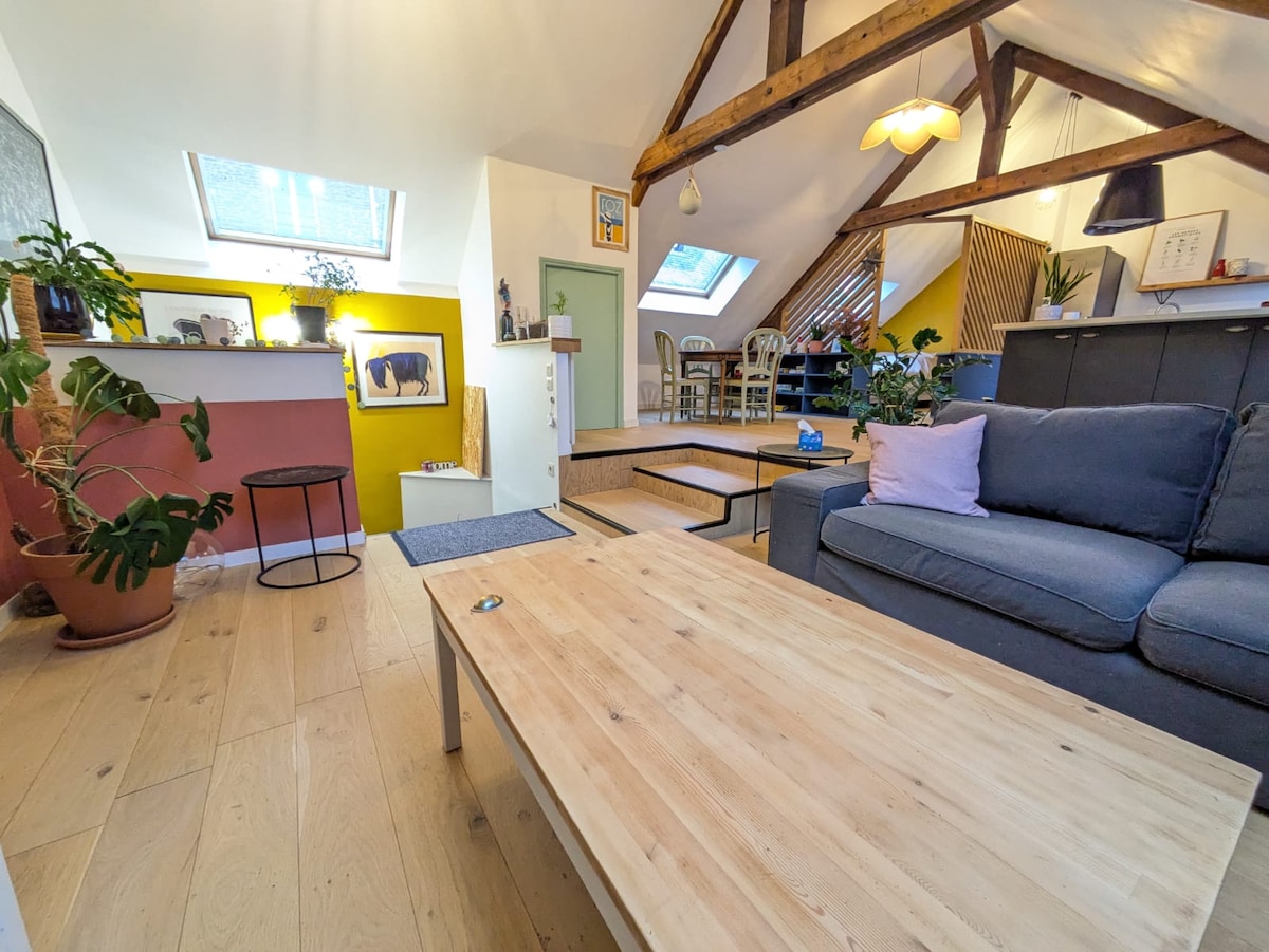 Magnífico dúplex en el corazón del centro histórico. Descubra Le Champ Jacquet, un dúplex que combina encanto y modernidad en el último piso de un hermoso edificio de Rennes. Disfrute de una vista de los tejados de Rennes, así como de los edificios con entramado de madera típicos de los alrededores. Este apartamento está cerca de restaurantes y calles comerciales del centro de la ciudad. El transporte (metro y autobús) está a menos de 2 minutos a pie. Ponte en contacto conmigo directamente. ¡Te responderé enseguida!