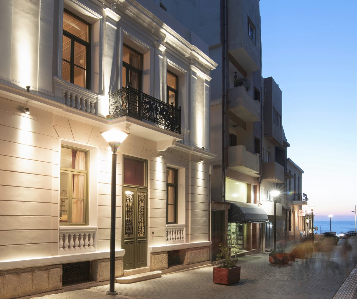 The NEW ERA is a sympathetic restoration of a neoclassical home dating from 1833. Completed with supervision of the Archeological Authorities, New Era is a designated monument of a bygone era of Heraklion. It is located in the historic centre of Heraklion, and you need less than 5 -10 minutes walk to museums, restaurants & the sea.
