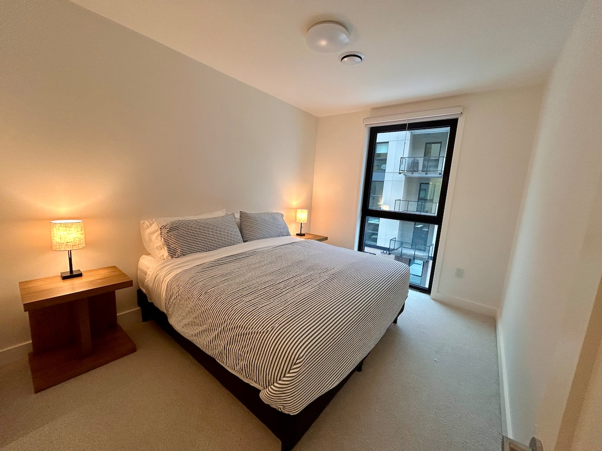 Welcome to the Place in the Pines. You will be treated with your own private hot tub while enjoying the mountain views on a spacious deck. Sleeping on brand new mattresses, sleeping 6 comfortably. This brand new unit comes with a cozy electric fireplace, local art and coffee and comfortable high end finishings. Storage is included for bikes & ski gear along with 1 heated underground parking spot. Full sized washer/dryer. Come and enjoy the snow and sun!