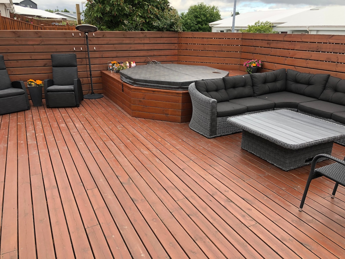 Cerca de Reikiavik, una linda casita, una bañera de hidromasaje
