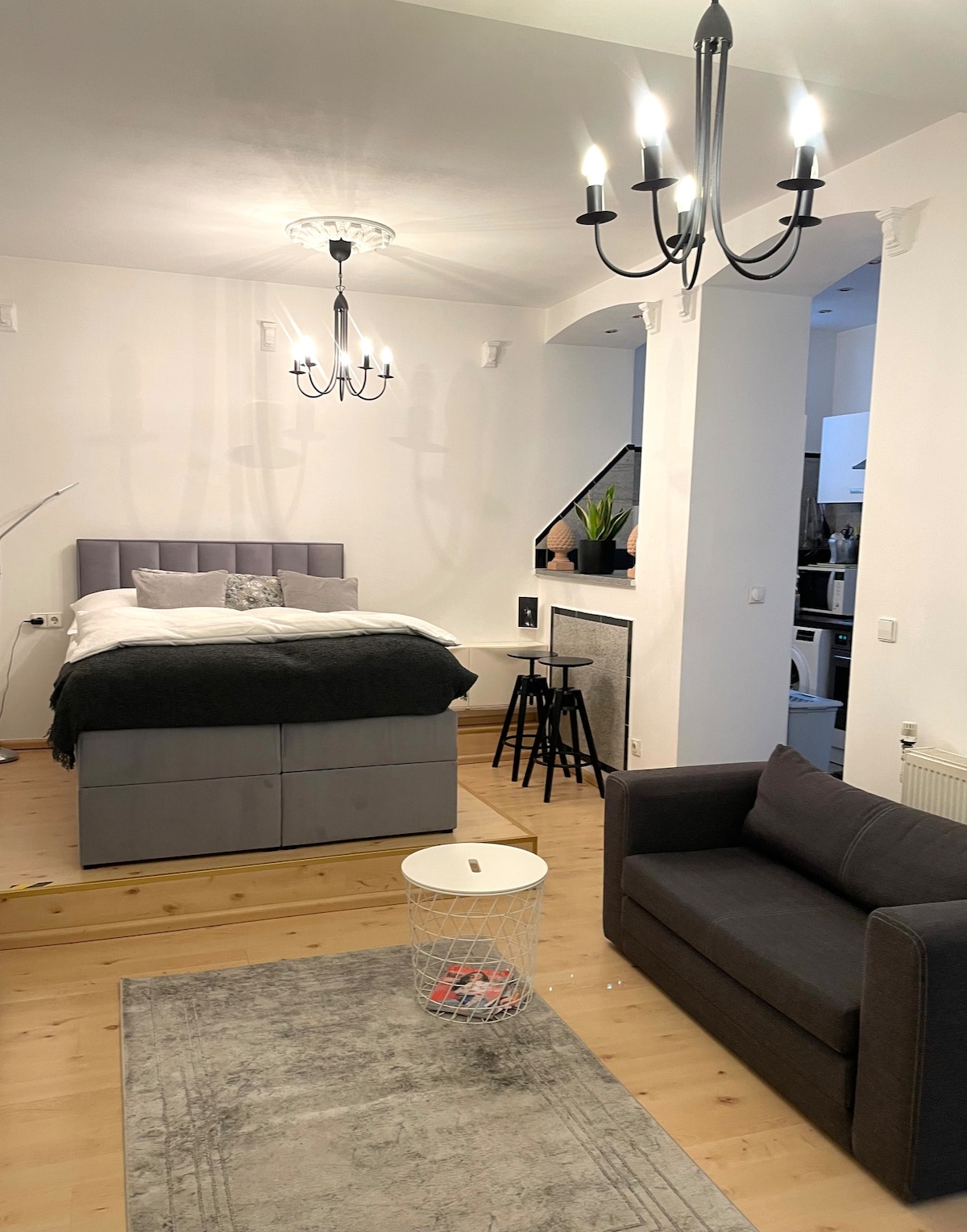 El encanto del edificio antiguo en el centro de la ciudad: a 50 metros de la zona peatonal y a 400 metros de la catedral. Solo tienes que salir por la puerta, pasear por las pequeñas calles del casco antiguo y descubre sus facetas eclécticas. El encantador apartamento caracteriza las bonitas vigas de madera. Relájate en el sofá nuevo, cocina con amigos en la cocina, disfruta de una copa de vino y haz que los cien años de historia te miren. Los detalles modernos permiten una forma de vida contemporánea. Nos vemos.