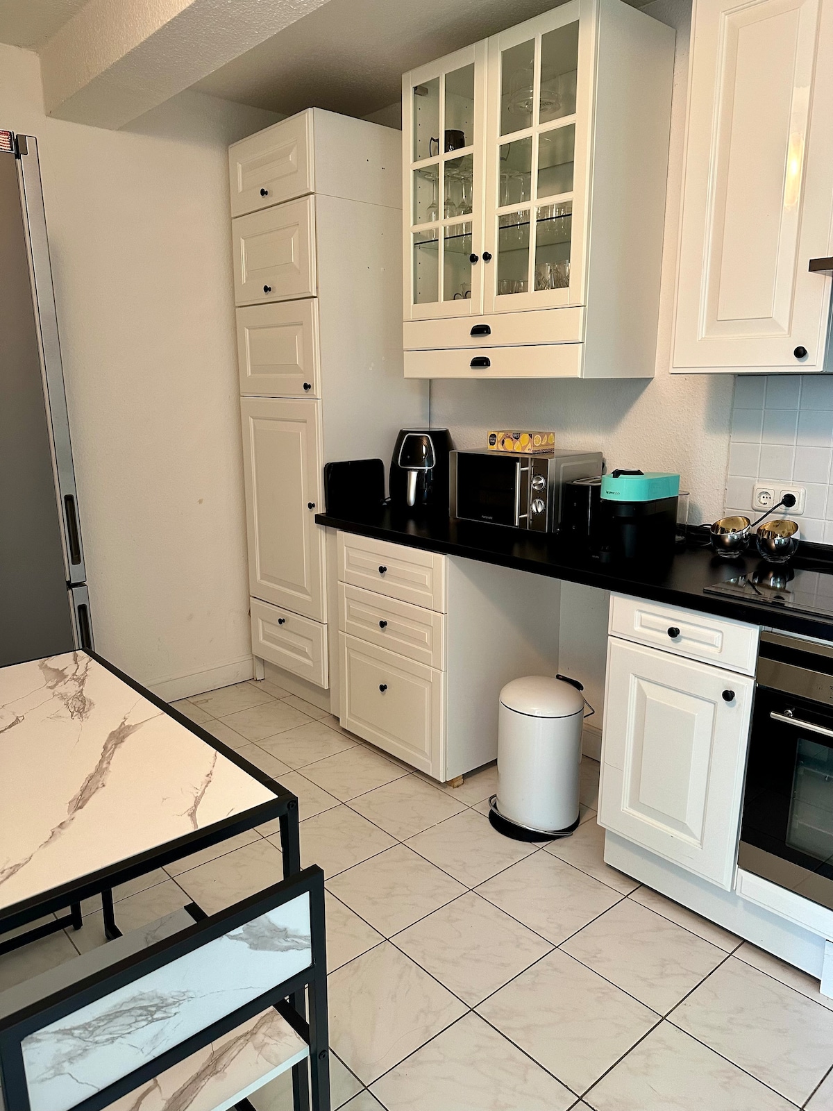 Die Mindestanzahl der Gäste beträgt 2. Lehne dich zurück und entspanne dich in unserer ruhigen 65qm Wohnung mit Fußbodenheizung & einem privaten Eingang. Verkehrsmittel wie Bus, Bahn , S-Bahn sind zu Fuß erreichbar. Zur Verfügung: Schlafzimmer mit einem Doppelbett 1,80m/2m. Schlafgelegenheiten für 5 weitere Personen verfügbar. Ein großes Wohnzimmer mit einme Smart Tv &Schreibtisch. Ausgestattete Küche mit Kühlschrank, Mikrowelle, Kaffeemaschine, Wasserkocher und Herd. ruhige Wohngegend