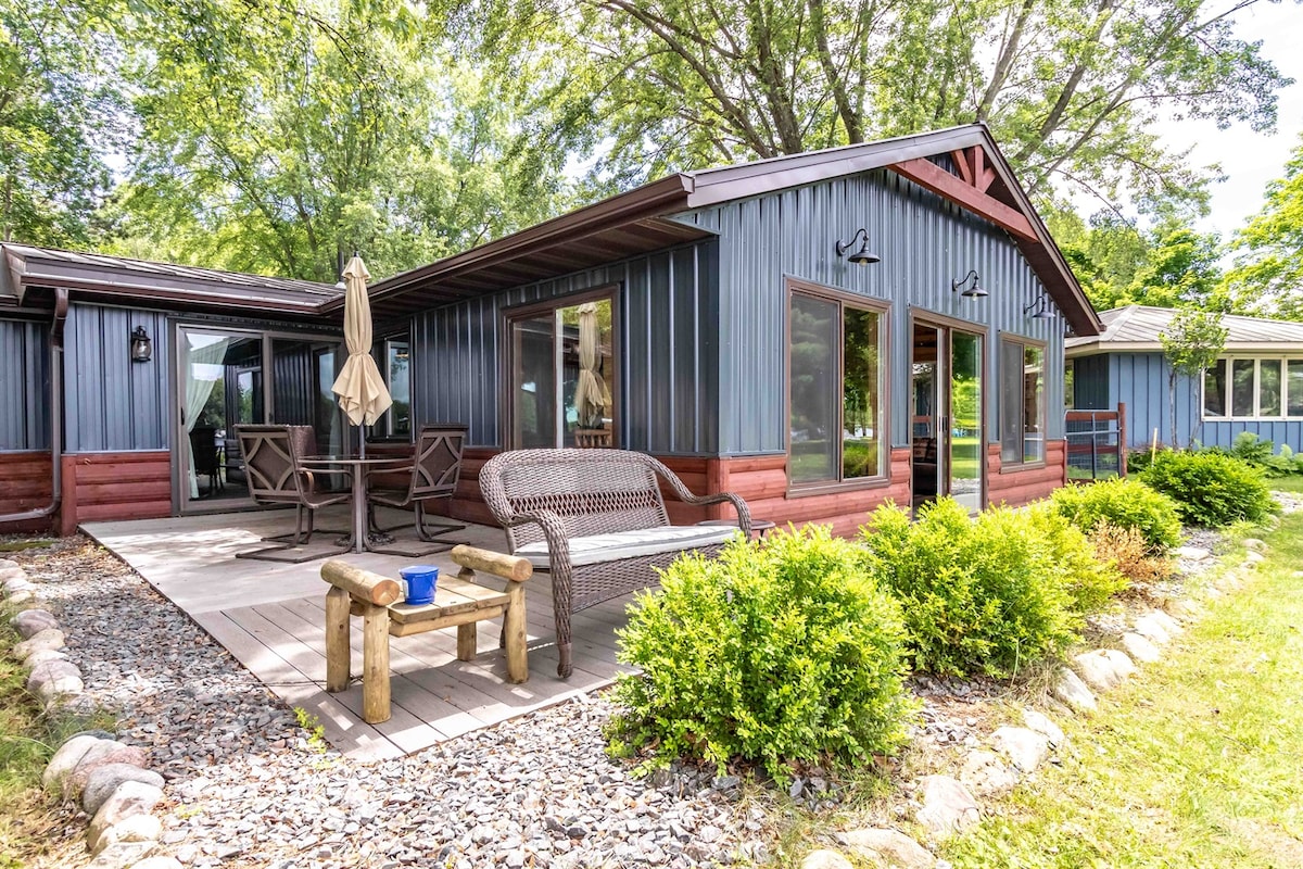 ¡Escapate al centro de Wisconsin en tu propia cabaña privada! Un dormitorio con una cama completa y una cama individual. Segundo dormitorio con cama queen. Cocina completa. Uso completo de juguetes acuáticos y kayaks. Juguetes para entretener a los niños pequeños. También se pueden alojar de 3 a 4 caravanas en el lugar con mucho estacionamiento. Aire acondicionado. Calefacción central y chimenea eléctrica. Refrigerador, microondas, cocina eléctrica, cafetera. Muelle privado con embarcadero público. No hay playa. Wifi. ¡Ahora abierto todo el año!