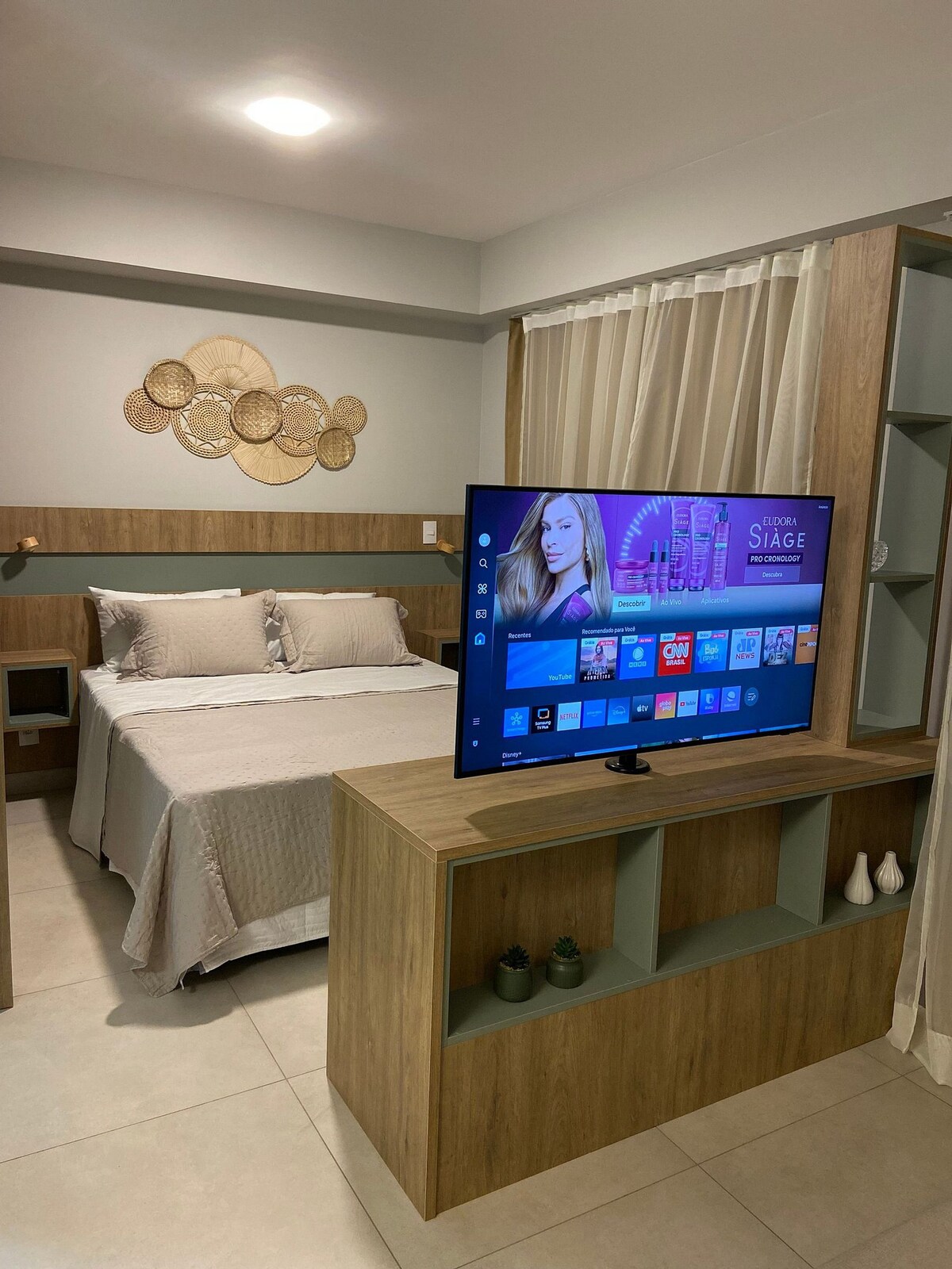 Este lugar único tiene su propio estilo. Acogedor, ubicación privilegiada. Fácil acceso a Agrishow, a 3 minutos de Ribeirão Shopping. Estudio, 1 cama doble, 1 sofá cama, TV solo con Netflix/Youtube (inicio de sesión de invitado), 1 baño, sala de estar, cocina/área de servicio equipada, aire acondicionado, 1 espacio de estacionamiento. Hermoso hall de entrada, sala de juegos, sala de relajación/sauna, piscina.