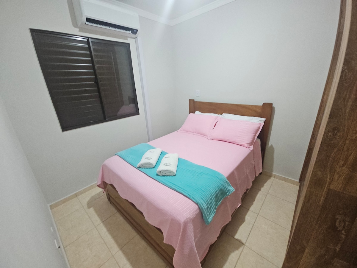 Apartamento para NO FUMADORES. Apartamento totalmente amueblado y decorado, cuenta con TV inteligente de 40” e internet, tres dormitorios con ventiladores y cama box, dos de ellos con aire acondicionado, ropa de cama (sábana bajera, sábana encimera, fundas y almohadas *no tenemos manta), toalla de cara y baño, tabla y plancha están disponibles, así como secador de pelo. Fácil acceso, cerca de la rod. anhanguera. Tienda con conveniencia en la misma calle, supermercados y farmacias muy cerca.