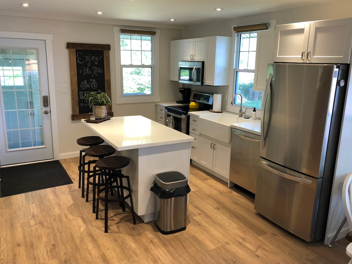 WELCOME TO KE’S PLACE! This ALL SEASONS rustic, private, 4 season, lakefront cottage on Pigeon Lake features 3 bedrooms, 3 full/double sized beds, large bright living room with sleeper sectional, newly renovated kitchen, two large decks, private dock, indoor fireplace, enclosed patio room, outdoor fire pit, and large yard for games and more. Located approximately 1.5 hours from Toronto, this cottage is the perfect place for families and friends to escape the hustle and bustle, relax and unwind.
