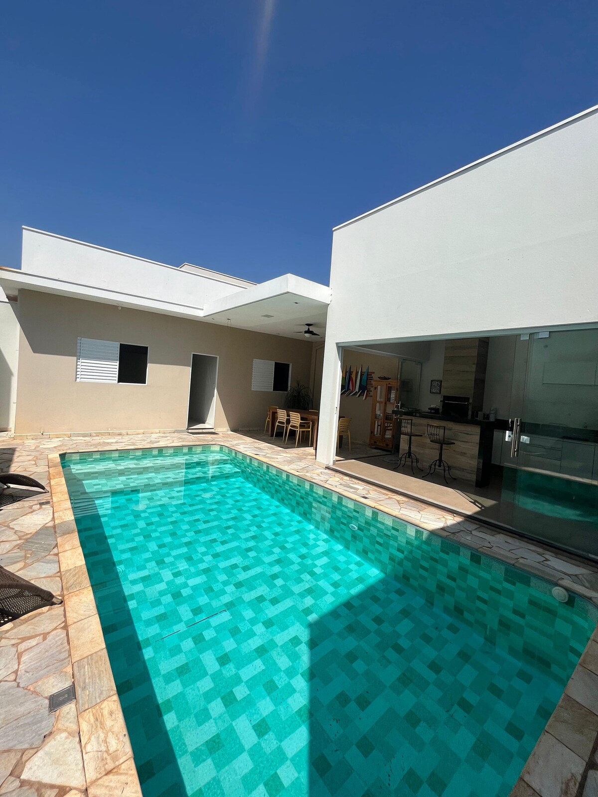 Estoy poniendo a disposición para alquiler por temporada una hermosa casa con piscina (área de 400 m²) ubicada en el Condominio Residencial Morada da Fronteira, en Rifaina-SP. Con todas las comodidades y seguridad de una casa en un condominio privado. Con capacidad para 16 personas (13 en camas y 3 en colchones), el “Rancho Tocando em Frente” está disponible para darles la bienvenida en ocasiones especiales, fines de semana y feriados.