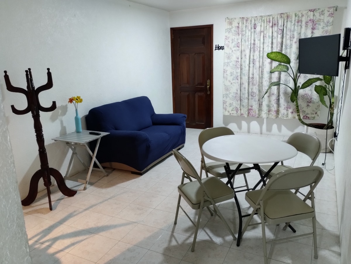 Con ubicación céntrica y entrada independiente, este lugar tiene todo lo que necesitas para tener una estancia cómoda. Cuenta con terraza con asador y mesa, un baño completo, cocina con equipamiento básico y sala con televisión, área de trabajo y sofá-cama matrimonial, la recamara es también matrimonial. Por su estratégica ubicación resulta muy cómodo, teniendo super mercados, restaurantes, cafés, parques, central de autobuses y el centro histórico a menos de cinco minutos a pie.