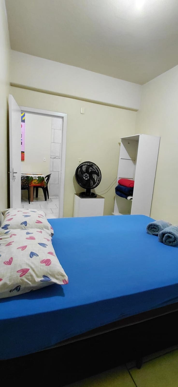 Amplo espaço, limpo e organizado. Sem divisão entre cômodos. Garagem coberta e privativa. Perto de mercado, padaria, restaurante e farmácia. Há 2 km do centro. Possui chaleira elétrica, ferro de passar, micro-ondas, ventilador, Louças e talheres. Amenidades gratuitas: chá, bolacha, café, açúcar, sal, shampoo, sabonete líquido, fio dental, toalhas de banho e de rosto. Itens para compra: pasta de dente, escova de dente, aparelho de barbear, absorvente feminino, sabonete.