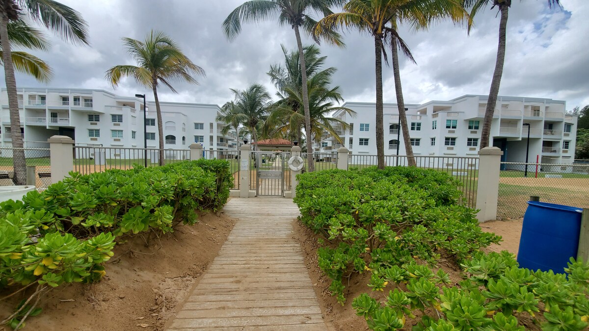 This beach apartment is close to El Yunque Rain Forest and the Wyndham Grand Rio Mar Hotel. It has walking access to a beautiful beach; pool and playing area. Good for couples and families (with kids). It's on a first floor, has two parking spaces available, internet, TV, equipped kitchen and everything needed to relax. It's a one bedroom apartment with a queen size bed on main bedroom and a sofa bed (queen size) on family room. Both areas (main bedroom and family room) have air conditioner.