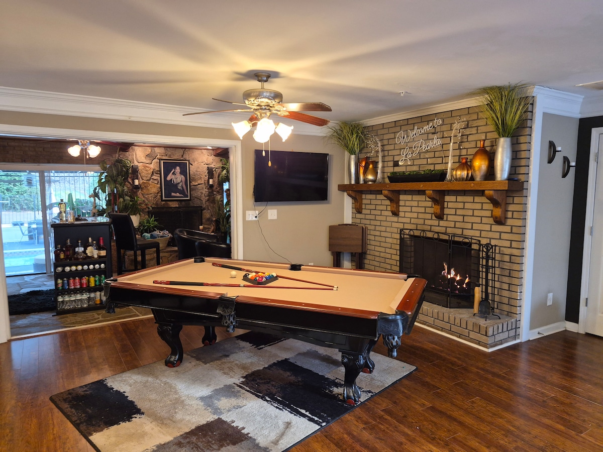 Escape to this modern 2000 sq ft greater Atlanta home for 9 guests! Enjoy a private backyard oasis with a hot tub, pool table, and fire pit gazebo. Inside, find a PS5, arcade machine, and a full kitchen. Perfect for families and groups, this pet-friendly retreat offers 4 bedrooms (2 King ensuites) and a dedicated workspace. Located just 6 miles from ATL airport, it's your ultimate entertainment hub for exploring the city.