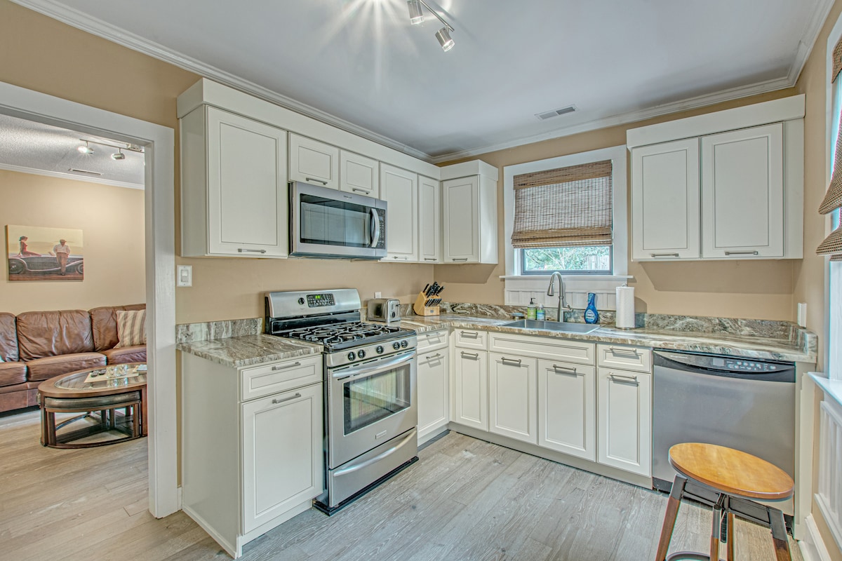Welcome to your cozy getaway in Park Circle! This charming two-bedroom, one-bath cottage features an inviting open floor plan that creates a warm and welcoming atmosphere. As you step inside, you’ll be greeted by a bright and airy living space that seamlessly connects to the dining area and fully equipped kitchen. This layout maximizes comfort and convenience. With easy access to downtown Charleston and nearby beaches, this cottage is the perfect base for your Lowcountry adventures.