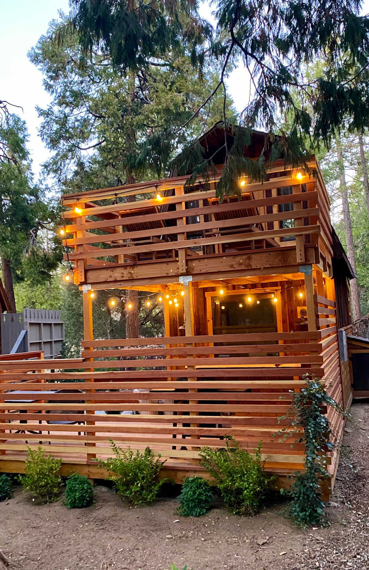 Nestled amongst towering cedars & mature manzanita trees, The Wildland Clarity Cabin is a dreamy and restorative mountain getaway. A classic 1966 A-Frame with both historic charm & modern mindful touches, this cabin was designed as a place of peace, serenity, & natural beauty. Our commitment to eco-friendly, organic, & upcycled materials can be found throughout the home. The mountains are calling... peace & rejuvenation await! Pet Friendly, AC, Forced Air Heat, Fireplace, Fire Pit, Hot Tub.