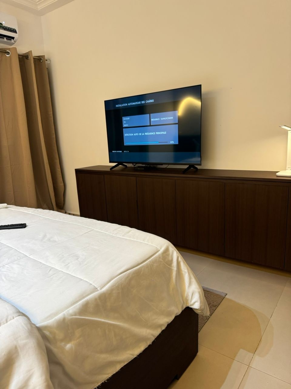 Disfrute de una estadía cómoda en este espacio luminoso de diseño moderno. Ubicado en una zona tranquila de Abiyán, este departamento combina elegancia, tecnología y relajación. Disfrute del aire acondicionado, wifi rápido, Netflix y Prime Video en Smart TV. ⭐ Puntos fuertes: ✔ Habitación confortable + cama doble sup ✔ Salón abierto y espacioso ✔ Cocina equipada + vajilla completa ✔ TV conectada con Netflix y Prime ✔ Wifi de alta velocidad ✔ Estacionamiento gratuito y seguro