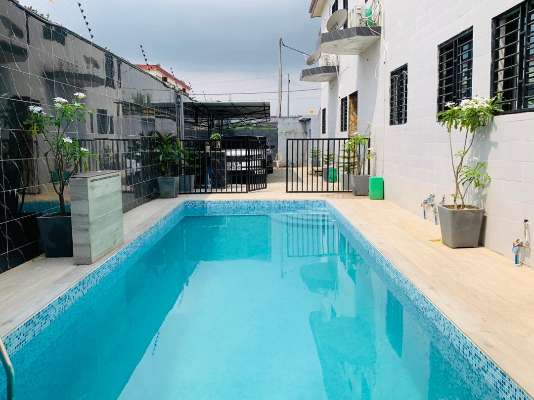 Bonita villa familiar con piscina privada situada en una zona tranquila en pleno centro de Abiyán. Es una villa de dos dormitorios, con un gran salón y una azotea muy agradable con una piscina justo enfrente. Se trata de una propiedad que consta de dos casas separadas por un gran jardín. El acceso para los viajeros es independiente y la piscina está a su entera disposición durante su estancia. La sala de estar y los dos dormitorios tienen aire acondicionado.
