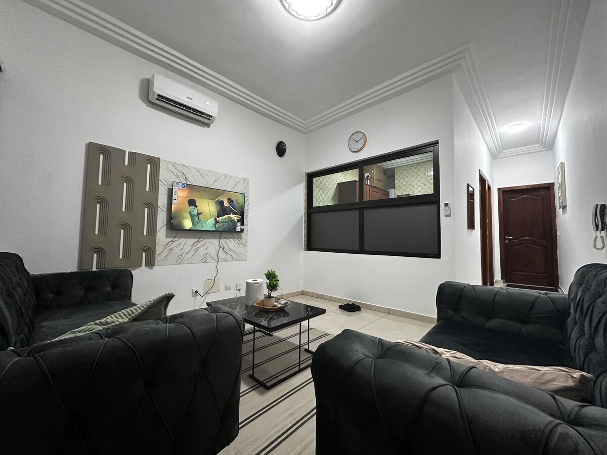 Détendez-vous dans ce logement calme et élégant. L’appartement se situe à côté de la Base CIE à Angré non loin du Nouveau CHU D’angré et du Carrefour market. Vous disposez d’un salon juste en bas du bâtiment ainsi qu’une boutique. Vous disposez de la wifi, Netflix et YouTube inclus dans le logement. Au plaisir de vous accueillir.